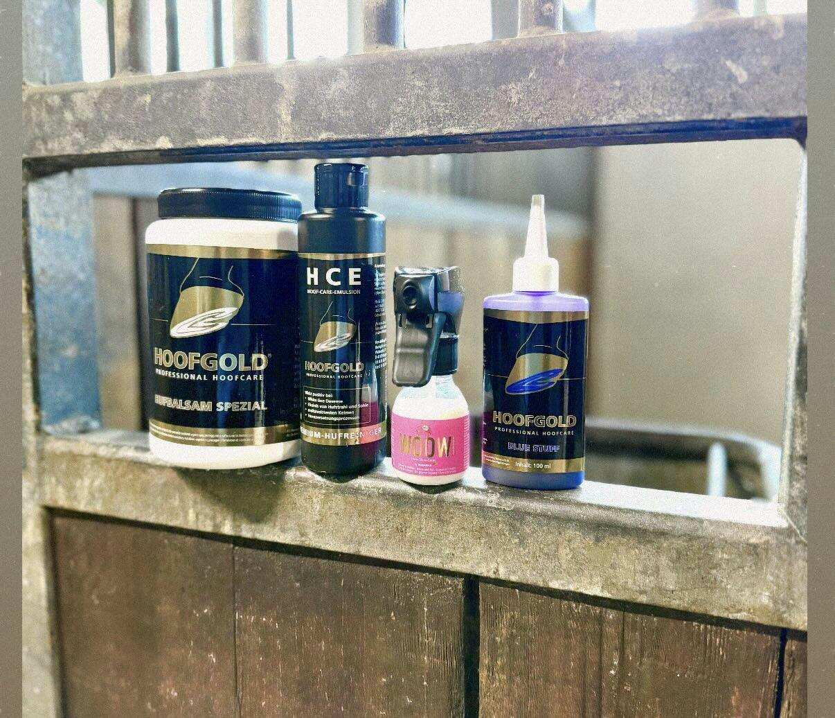 HOOFGOLD Hufbalsam Spezial fĂŒr Pferde dient als ideale Hufpflege bei besonders brĂŒchigen Hufen, sowie auch als Mittel bei StrahlfĂ€ule, einer sehr hĂ€ufig vertretenen Huferkrankung.Â
